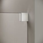 Auf Maß gefertigte Tür ohne Wandprofil, mit edler verchromter Wandbefestigung.